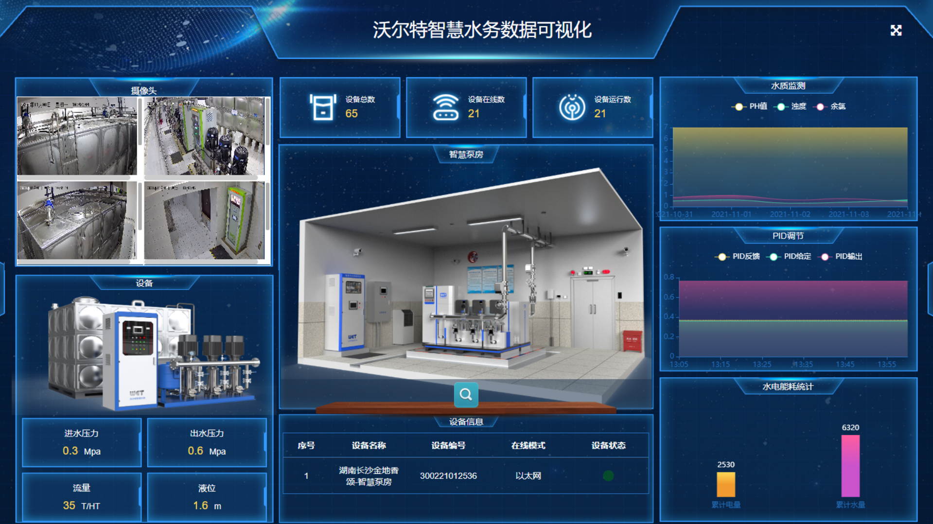 沃爾特智慧泵房系統高度集成,推出將供水機組、電氣控制系統、安防系統、水質監測系統、遠程監控系統、流量監測設備、消毒設備、空調和除濕設備等集于泵房之內,并將傳統泵房與現代大數據智慧互聯完美融合,真正實現...